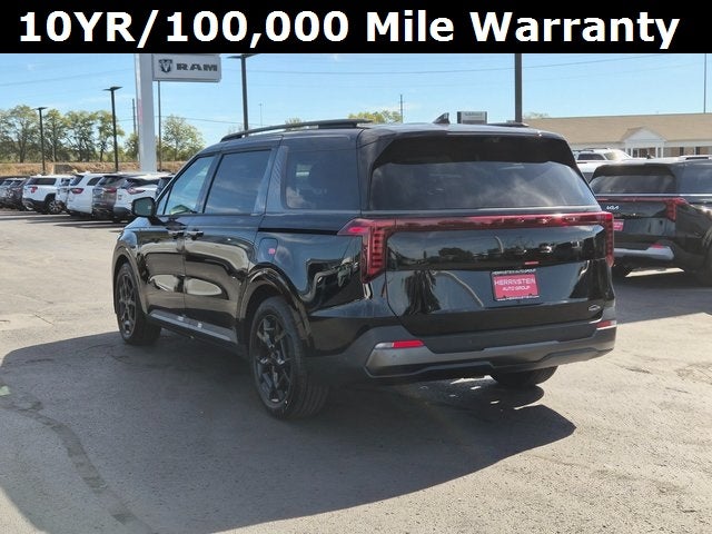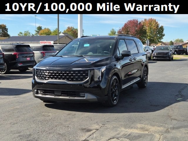 Herrnstein Auto Group is pumped up to offer this 2026 Kia Carnival SX Prestige in Aurora Black Pearl with Off-Black Leather. This Carnival is very well equipped with Rear Seat Entertainment Package (Dual Screen Rear Seat Entertainment System), SX Prestige Seat Package (2nd Row Laminated Windows, Ambient Lighting, Heated/Ventilated 2nd Row Power Seats, and High Glossy Interior Trim), 12 Speakers, 3.51 Axle Ratio, 3rd row seats: split-bench, 4-Wheel Disc Brakes, ABS brakes, Air Conditioning, Alloy wheels, AM/FM radio: SiriusXM, Apple CarPlay & Android Auto, Auto High-beam Headlights, Auto-dimming Rear-View mirror, Automatic temperature control, Brake assist, Bumpers: body-color, Cargo Tray, Compass, Delay-off headlights, Driver door bin, Driver vanity mirror, Dual front impact airbags, Dual front side impact airbags, Electronic Stability Control, Emergency communication system, Exterior Parking Camera Rear, Four wheel independent suspension, Front anti-roll bar, Front Bucket Seats, Front Center Armrest, Front dual zone A/C, Front fog lights, Front reading lights, Fully automatic headlights, Garage door transmitter: HomeLink, Heads-Up Display, Heated door mirrors, Heated front seats, Heated steering wheel, Illuminated entry, Knee airbag, Leather Shift Knob, Leather steering wheel, Low tire pressure warning, Luxury Carpeted Floor Mats, Memory seat, Navigation System, Occupant sensing airbag, Outside temperature display, Overhead airbag, Overhead console, Panic alarm, Passenger door bin, Passenger vanity mirror, Power 2nd-Row Moonroof, Power door mirrors, Power driver seat, Power Liftgate, Power moonroof, Power passenger seat, Power steering, Power windows, Pure Leather Seat Trim, Radio: AM/FM/HD Audio System, Rain sensing wipers, Rear air conditioning, Rear anti-roll bar, Rear reading lights, Rear window defroster, Rear window wiper, Reclining 3rd row seat, Remote keyless entry, Security system, Speed control, Speed-sensing steering, Split folding rear seat, Spoiler, Steering wheel mounted audio controls, Tachometer, Telescoping steering wheel, Tilt steering wheel, Traction control, Trip computer, Turn signal indicator mirrors, Variably intermittent wipers, Ventilated front seats, and Wheels: 7.5J x 19 Alloy Dark Edition. 18/26 City/Highway MPG