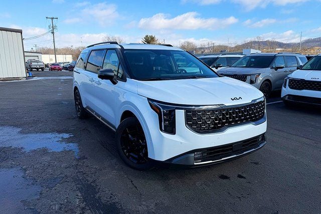 Herrnstein Auto Group is very proud to offer this 2026 Kia Carnival SX in Snow White Pearl with Off-Black Artificial Leather. This Carnival is very well equipped with SX Dark Edition Package (Wheels: 7.5J x 19 Alloy Dark Edition), 3.51 Axle Ratio, 3rd row seats: split-bench, 4-Wheel Disc Brakes, 8 Speakers, ABS brakes, Air Conditioning, All Weather Floor Mats (8-Passenger), Alloy wheels, AM/FM radio: SiriusXM, Apple CarPlay & Android Auto, Artificial Leather Seat Trim, Auto High-beam Headlights, Automatic temperature control, Brake assist, Bumpers: body-color, Compass, Dark Edition Front Grille Trim, Dark Edition Mirror Caps, Delay-off headlights, Driver door bin, Driver vanity mirror, Dual front impact airbags, Dual front side impact airbags, Electronic Stability Control, Emergency communication system, Exterior Parking Camera Rear, Four wheel independent suspension, Front anti-roll bar, Front Bucket Seats, Front Center Armrest, Front dual zone A/C, Front fog lights, Front reading lights, Fully automatic headlights, Heated and Ventilated Front Bucket Seats, Heated door mirrors, Heated front seats, Illuminated entry, Knee airbag, Leather Shift Knob, Leather steering wheel, Low tire pressure warning, Memory seat, Navigation System, Occupant sensing airbag, Outside temperature display, Overhead airbag, Overhead console, Panic alarm, Passenger door bin, Passenger vanity mirror, Power 2nd-Row Moonroof, Power door mirrors, Power driver seat, Power Liftgate, Power moonroof, Power passenger seat, Power steering, Power windows, Radio: AM/FM/HD Audio System, Rain sensing wipers, Rear air conditioning, Rear anti-roll bar, Rear reading lights, Rear window defroster, Rear window wiper, Reclining 3rd row seat, Remote keyless entry, Security system, Speed control, Speed-sensing steering, Split folding rear seat, Spoiler, Steering wheel mounted audio controls, Tachometer, Telescoping steering wheel, Tilt steering wheel, Traction control, Trip computer, Turn signal indicator mirrors, Variably intermittent wipers, Ventilated front seats, and Wheels: 7.5J x 19 Black Alloy. 18/26 City/Highway MPG