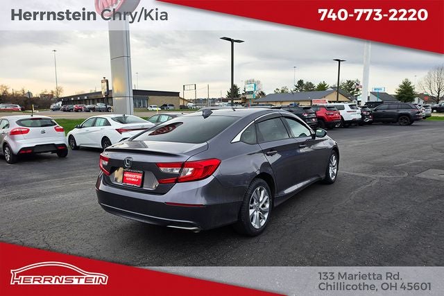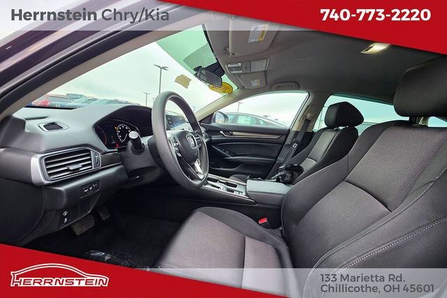 Herrnstein Auto Group is excited to offer this 2020 Honda Accord LX in Modern Steel Metallic with Black Cloth. This Accord is very well equipped with Accident Free History Report, Alloy Wheels, iPod / USB Port, Backup Camera, Bluetooth®, Voice Recognition, Lane Keeping Assist, and Adaptive Cruise Control Black Cloth, 4 Speakers, 4-Wheel Disc Brakes, ABS brakes, Adaptive Cruise Control: Adaptive Cruise Control (ACC) with Low-Speed Follow, Air Conditioning, Alloy wheels, AM/FM radio, Auto High-beam Headlights, Automatic temperature control, Brake assist, Bumpers: body-color, Cloth Seat Trim, Delay-off headlights, Driver door bin, Driver vanity mirror, Dual front impact airbags, Dual front side impact airbags, Electronic Stability Control, Exterior Parking Camera Rear, Forward collision: Collision Mitigation Braking System (CMBS) + FCW mitigation, Four wheel independent suspension, Front anti-roll bar, Front Bucket Seats, Front Center Armrest, Front dual zone A/C, Front reading lights, Fully automatic headlights, Illuminated entry, Knee airbag, Lane Departure Warning System, Low tire pressure warning, Occupant sensing airbag, Outside temperature display, Overhead airbag, Overhead console, Panic alarm, Passenger door bin, Passenger vanity mirror, Power door mirrors, Power steering, Power windows, Radio data system, Radio: 160-Watt AM/FM Audio System, Rear anti-roll bar, Rear seat center armrest, Rear window defroster, Remote keyless entry, Security system, Speed control, Speed-sensing steering, Speed-Sensitive Wipers, Steering wheel mounted audio controls, Tachometer, Telescoping steering wheel, Tilt steering wheel, Traction control, Trip computer, Variably intermittent wipers, and Wheels: 17 Silver-Painted Alloy. 30/38 City/Highway MPG