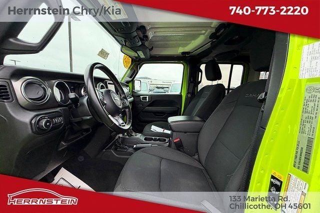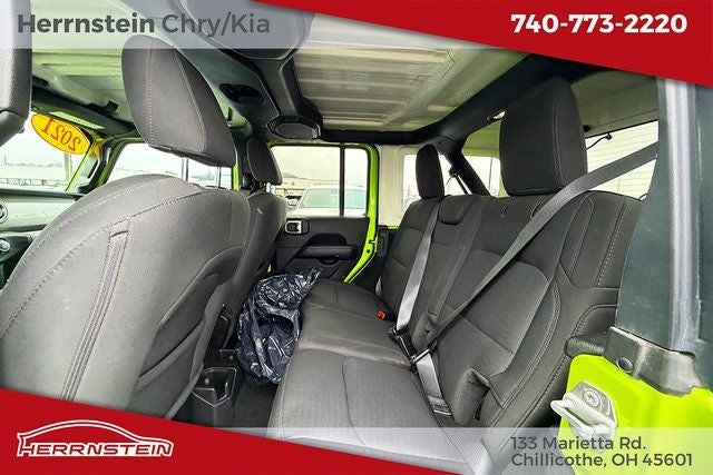 Herrnstein Auto Group is pleased to offer this 2021 Jeep Wrangler Unlimited Sahara in Pearl with Black Cloth. This Wrangler is very well equipped with 1 Owner, Accident Free History Report, Alloy Wheels, XM/Sirius Satellite Radio, iPod / USB Port, Auxiliary Audio Port, Backup Camera, Touchscreen Control Center, uConnect, Bluetooth®, Voice Recognition, Fog Lights, and Heated Mirrors 4WD, ABS brakes, Alloy wheels, Compass, Electronic Stability Control, Front dual zone A/C, Heated door mirrors, Illuminated entry, Low tire pressure warning, ParkView Rear Back-Up Camera, Remote keyless entry, Traction control, 3.45 Rear Axle Ratio, 4-Wheel Disc Brakes, 8 Speakers, Air Conditioning, AM/FM radio: SiriusXM, Apple CarPlay, Apple CarPlay/Android Auto, Automatic temperature control, Aux Battery, Brake assist, Cloth Low-Back Bucket Seats, Delay-off headlights, Driver door bin, Driver vanity mirror, Dual front impact airbags, Dual front side impact airbags, Front anti-roll bar, Front Bucket Seats, Front Center Armrest w/Storage, Front fog lights, Front reading lights, Fully automatic headlights, Garage door transmitter, Google Android Auto, GPS Antenna Input, Heavy Duty Suspension w/Gas Shocks, Integrated roll-over protection, Integrated Voice Command w/Bluetooth®, Leather steering wheel, Non-Lock Fuel Cap w/o Discriminator, Occupant sensing airbag, Outside temperature display, Panic alarm, Passenger door bin, Passenger vanity mirror, Power door mirrors, Power steering, Power windows, Radio data system, Radio: Uconnect 4 w/7 Display, Rear anti-roll bar, Rear reading lights, Security system, Speed control, Split folding rear seat, Steering wheel mounted audio controls, Stop-Start Dual Battery System, Tachometer, Telescoping steering wheel, Tilt steering wheel, Trip computer, Variably intermittent wipers, Voltmeter, and Wheels: 18 x 7.5 Polished w/Gray Spokes.