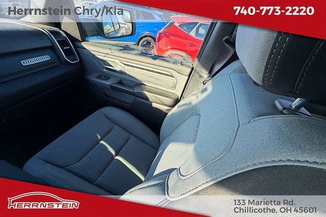 Herrnstein Auto Group is pumped up to offer this 2021 Ram 1500 Big Horn/Lone Star in Granite Crystal Metallic Clearcoat with Black Cloth. This 1500 is very well equipped with Big Horn Level 1 Equipment Group (Auto-Dimming Exterior Driver Mirror, Auto-Dimming Rear-View Mirror, Black Premium Power Mirrors, Class IV Receiver Hitch, Cluster 3.5 TFT Color Display, Exterior Mirrors Courtesy Lamps, Exterior Mirrors w/Supplemental Signals, Foam Bottle Insert (Door Trim Panel), For More Info, Call 800-643-2112, Glove Box Lamp, Power 4-Way Driver Lumbar Adjust, Power 8-Way Driver Seat, Power Adjustable Pedals, Power-Folding Mirrors, Radio: Uconnect 4 w/8.4 Display, Rear Dome w/On/Off Switch Lamp, Rear Power Sliding Window, Rear Window Defroster, SiriusXM Radio Service, SiriusXM Satellite Radio, Sun Visors w/Illuminated Vanity Mirrors, and Universal Garage Door Opener), Quick Order Package 23Z Big Horn (Big Horn Badge), 3 Rear Seat Head Restraints, 3.21 Rear Axle Ratio, 4 Way Front Headrests, 4-Wheel Disc Brakes, 40/20/40 Split Bench Seat, 48V Belt Starter Generator, 6 Speakers, ABS brakes, Air Conditioning, Alloy wheels, AM/FM radio, Black Exterior Mirrors, Brake assist, Bumpers: chrome, Cloth Bench Seat, Compass, Delay-off headlights, Driver door bin, Dual front impact airbags, Dual front side impact airbags, Electronic Stability Control, Front anti-roll bar, Front Center Armrest w/Storage, Front fog lights, Front License Plate Bracket, Front reading lights, Front Seat Back Map Pockets, Front wheel independent suspension, Fully automatic headlights, GPS Antenna Input, Heated door mirrors, Illuminated entry, Integrated Voice Command w/Bluetooth®, Leather steering wheel, Low tire pressure warning, Manual Adjust 4-Way Front Passenger Seat, Manufacturer's Statement of Origin, Occupant sensing airbag, Outside temperature display, Overhead airbag, Overhead console, Panic alarm, ParkView Rear Back-Up Camera, Passenger door bin, Passenger vanity mirror, Power door mirrors, Power steering, Power windows, Radio data system, Radio: Uconnect 3 w/5 Display, Rear 60/40 Folding Seat, Rear anti-roll bar, Rear seat center armrest, Rear step bumper, Rear Wheelhouse Liners, Remote keyless entry, Speed control, Split folding rear seat, Steering wheel mounted audio controls, Tachometer, Telescoping steering wheel, Tilt steering wheel, Traction control, Trip computer, Variably intermittent wipers, Voltmeter, and Wheels: 18 x 8 Cast-Aluminum Painted.