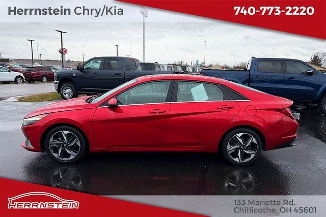 Herrnstein Auto Group is pleased to offer this 2022 Hyundai Elantra Limited in Calypso Red with Black Leather. This Elantra is very well equipped with 1 Owner, Alloy Wheels, XM/Sirius Satellite Radio, Premium Audio Package, iPod / USB Port, Auxiliary Audio Port, Backup Camera, Touchscreen Control Center, Bluelink, GPS / Navigation System, Bluetooth®, Voice Recognition, Apple CarPlay, Android Auto, Remote Start, Heated Seats, Sunroof / Moonroof, Lane Keeping Assist, Blind Spot Monitor, and Adaptive Cruise Control Option Group 01, Elantra Limited, Navigation System, 17 x 7.0J Alloy Wheels, 4-Wheel Disc Brakes, 8 Speakers, ABS brakes, Air Conditioning, Alloy wheels, AM/FM radio: SiriusXM, Apple CarPlay & Android Auto, Auto High-beam Headlights, Auto-dimming Rear-View mirror, Automatic temperature control, Brake assist, Bumpers: body-color, Carpeted Floor Mats, Delay-off headlights, Driver door bin, Driver vanity mirror, Dual front impact airbags, Dual front side impact airbags, Electronic Stability Control, Emergency communication system: Blue Link Connected Car Service (3-year complimentary subscription), Exterior Parking Camera Rear, First Aid Kit, Front anti-roll bar, Front Bucket Seats, Front Center Armrest, Front dual zone A/C, Front reading lights, Front wheel independent suspension, Fully automatic headlights, Heated door mirrors, Heated Front Bucket Seats, Heated front seats, Illuminated entry, Leather-Trimmed Seats, Low tire pressure warning, Occupant sensing airbag, Outside temperature display, Overhead airbag, Overhead console, Panic alarm, Passenger door bin, Passenger vanity mirror, Power door mirrors, Power driver seat, Power moonroof, Power steering, Power windows, Radio: AM/FM/HD/SiriusXM Display Audio, Rear Bumper Applique, Rear seat center armrest, Rear window defroster, Remote keyless entry, Reversible Cargo Tray, Security system, Speed control, Speed-sensing steering, Split folding rear seat, Steering wheel mounted audio controls, Tachometer, Telescoping steering wheel, Tilt steering wheel, Traction control, Trip computer, Turn signal indicator mirrors, Variably intermittent wipers, and Wheel Locks. 31/41 City/Highway MPG