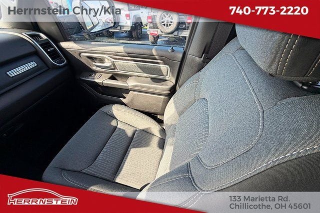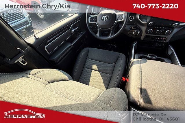 Herrnstein Auto Group is excited to offer this 2023 Ram 1500 Big Horn/Lone Star in Bright White Clearcoat with Black Cloth. This 1500 is very well equipped with 1 Owner, Accident Free History Report, Alloy Wheels, XM/Sirius Satellite Radio, iPod / USB Port, Auxiliary Audio Port, Backup Camera, Touchscreen Control Center, uConnect, Bluetooth®, Voice Recognition, Apple CarPlay, Android Auto, Fog Lights, Trailer Tow Package, Remote Start, Heated Steering Wheel, Heated Mirrors, Heated Seats, and Running Boards Big Horn Level 2 Equipment Group (DISC) (115V Auxiliary Power Outlet, 2nd Row In Floor Storage Bins, 400W Inverter, 4G LTE Wi-Fi Hot Spot, 8.4 Touchscreen Display, 9 Amplified Speakers w/Subwoofer, Air Conditioning ATC w/Dual Zone Control, Apple CarPlay, Auto-Dimming Exterior Driver Mirror, Auto-Dimming Rear-View Mirror, Black Exterior Mirrors, Black Premium Power Mirrors, Bluetooth® Handsfree Phone & Audio, Class IV Receiver Hitch, Cluster 7.0 TFT Color Display, Connectivity - US/Canada, Convex Wide-Angle Exterior Mirror Insert, Electric Shift-On-Demand Transfer Case, Exterior Mirrors Courtesy Lamps, Exterior Mirrors w/Heating Element, Exterior Mirrors w/Supplemental Signals, For Details, Visit DriveUconnect.com, For More Info, Call 800-643-2112, Front Fog Lamps, Glove Box Lamp, Google Android Auto, GPS Antenna Input, Heated Front Seats, Heated Steering Wheel, Integrated Center Stack Radio, LED Footwell Lighting, Media Hub w/2 Charge Only USBs, ParkSense Front/Rear Park Assist w/Stop, Power 2-Way Driver Lumbar Adjust, Power 8-Way Driver Seat, Power Adjustable Pedals, Power-Folding Mirrors, Radio: Uconnect 5 W w/8.4 Display, Rear Dome w/On/Off Switch Lamp, Rear Power Sliding Window, Rear Window Defroster, Remote Start System, Security Alarm, SiriusXM Satellite Radio, Sun Visors w/Illuminated Vanity Mirrors, Universal Garage Door Opener, and USB Host Flip), Night Edition (3 Rear Seat Head Restraints, 4 Way Front Headrests, Accent Color Door Handles, Accent Color Premium Power Mirrors, Anti-Spin Differential Rear Axle, Black Exterior Truck Badging, Black Headlamp Bezels, Black Interior Accents, Black Painted Exterior Mirrors Caps, Body Color Front Bumper, Body Color Rear Bumper w/Step Pads, Bucket Seats, Center Console Parts Module, Deluxe Cloth Bucket Seats, Dual Exhaust w/Black Tips, Front Seat Back Map Pockets, Full Length Floor Console, Grille Surround 1 Black Texture 2 Black, Manual Adjust 4-Way Front Passenger Seat, RAM Grille Badge - Black, Rear 60/40 Folding Seat, Rear Center Armrest, and Wheels: 20 x 9.0 Premium Paint/Polished), Quick Order Package 27Z Big Horn (Big Horn Badge), 3.21 Rear Axle Ratio, 4-Wheel Disc Brakes, 48V Belt Starter Generator, 6 Speakers, ABS brakes, Active Noise Control System, Air Conditioning, Alloy wheels, AM/FM radio, Brake assist, Bumpers: chrome, Cloth Bench Seat, Compass, Delay-off headlights, Driver door bin, Dual front impact airbags, Dual front side impact airbags, Dual Rear Exhaust w/Bright Tips, Electronic Stability Control, Emergenc